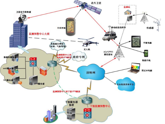 地質災害監測預警智慧管理系統綜合利用計算機網絡技術、地理信息系統技術、衛星導航定位與通信技術、遙感技術、自動監測技術等,實現地質災害自動監測與預警、信息發布、救援指揮和管理等功能。