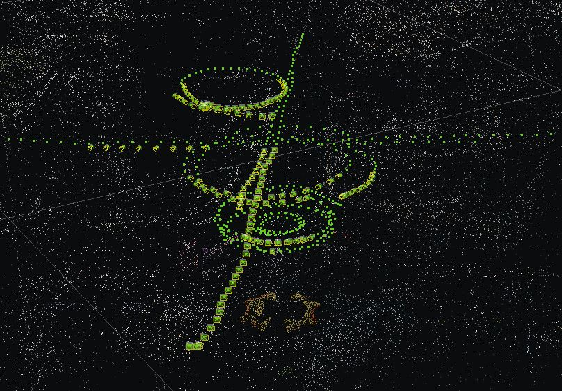 補(bǔ)飛航線安排與原航線呈30°-45°夾角,可增大航攝重疊度,提高航攝數(shù)據(jù)的使用率。設(shè)計(jì)繞飛航線時(shí),盡量帶到地面數(shù)據(jù),以便必要時(shí)可以使用控制點(diǎn)進(jìn)行數(shù)據(jù)融合。