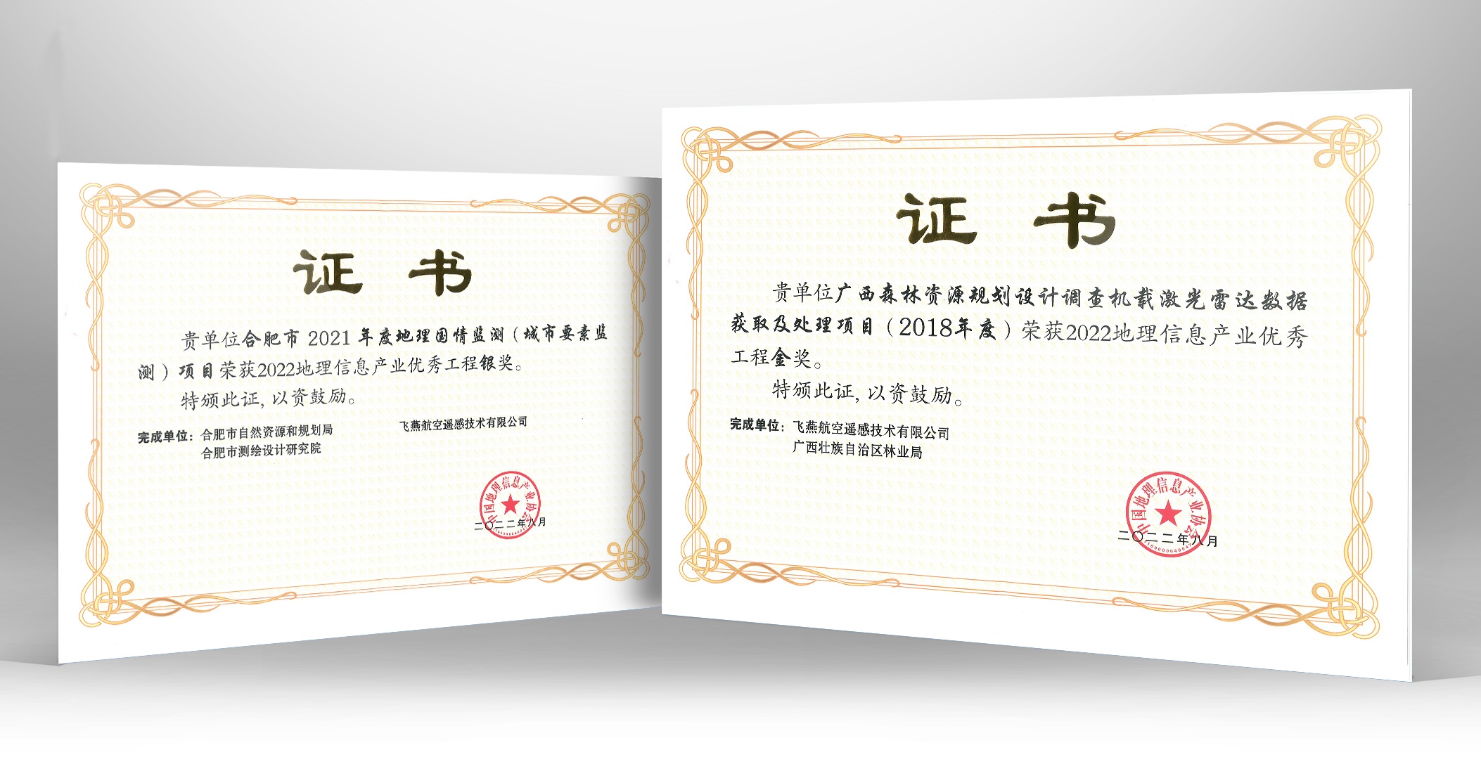 飛燕遙感2022地理信息產(chǎn)業(yè)優(yōu)秀工程獎(jiǎng)證書(shū)
