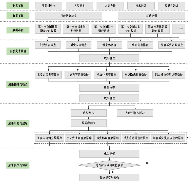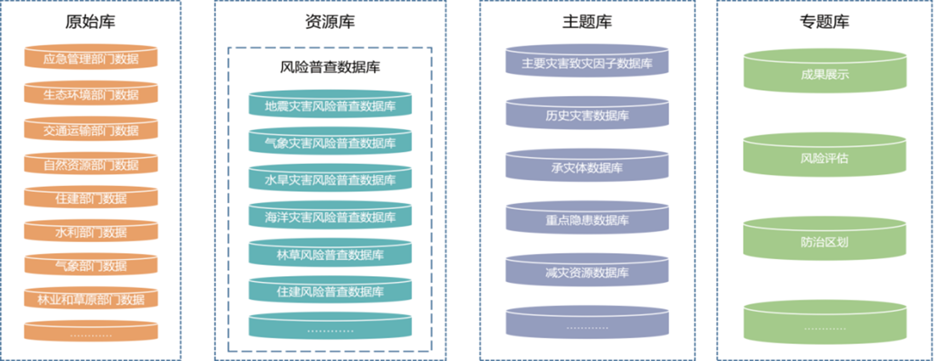 為滿足自然災害風險普查成果數據的存儲、匯交、管理、查詢、共享等需求,《全國災害綜合風險普查總體方案》要求基于分布式、云計算、大數據等技術,構建面向省、市、縣各層級以及應急管理、水利、氣象等多個涉災部門的災害風險和減災能力數據體系。