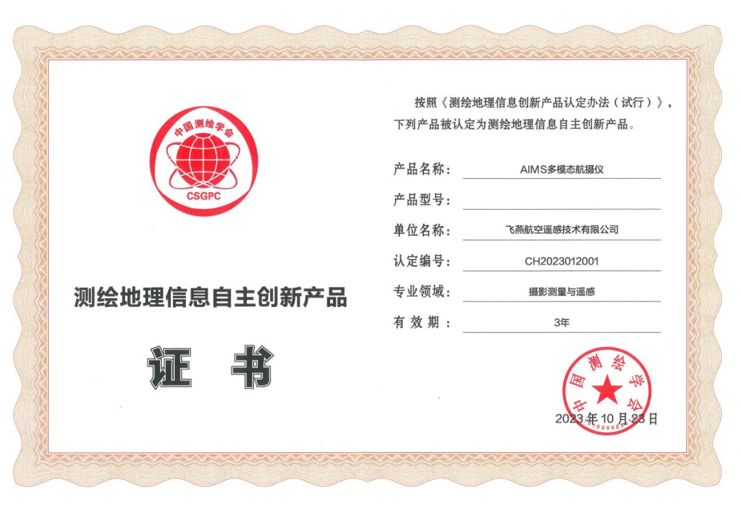 憑借《AIMS多模態航攝儀的研制與規?;瘧藐P鍵技術》項目斬獲2023地理信息科技進步獎一等獎。