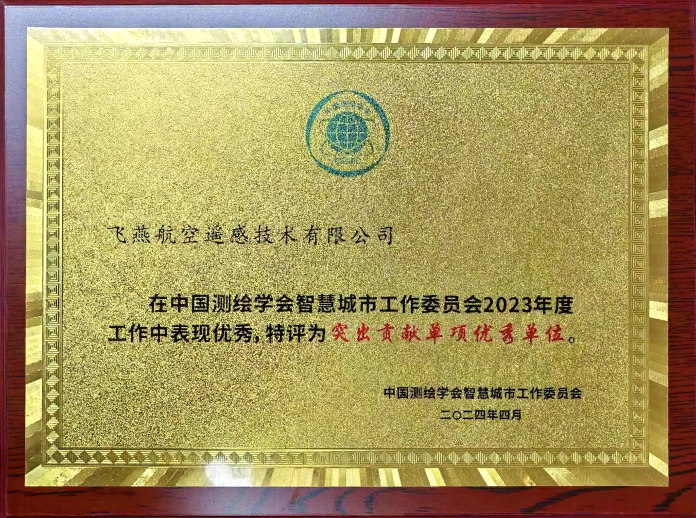 會議舉行了降重的表彰儀式,飛燕遙感作為中國測繪學會智慧城市工作委員會委員單位,在2023年度工作表現優秀,并評為“突出貢獻單項優秀單位”。