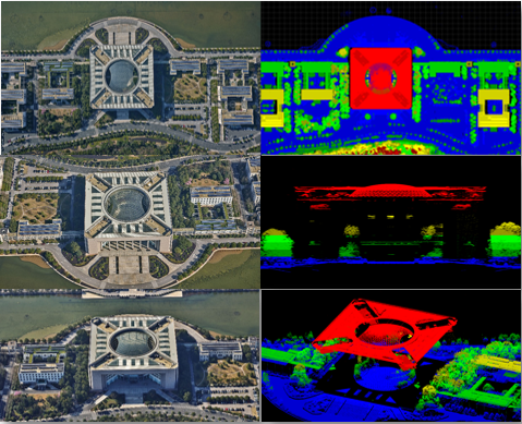 利用多模態數據的優勢,可以在簡化和輕量化的基礎上進一步提升真實性和豐富度。利用激光點云輔助生成高精度建筑物模型,利用傾斜影像映射參考紋理,通過對紋理進行分析,便能得到更加貼近現實的模型紋理,讓表達更加真實。