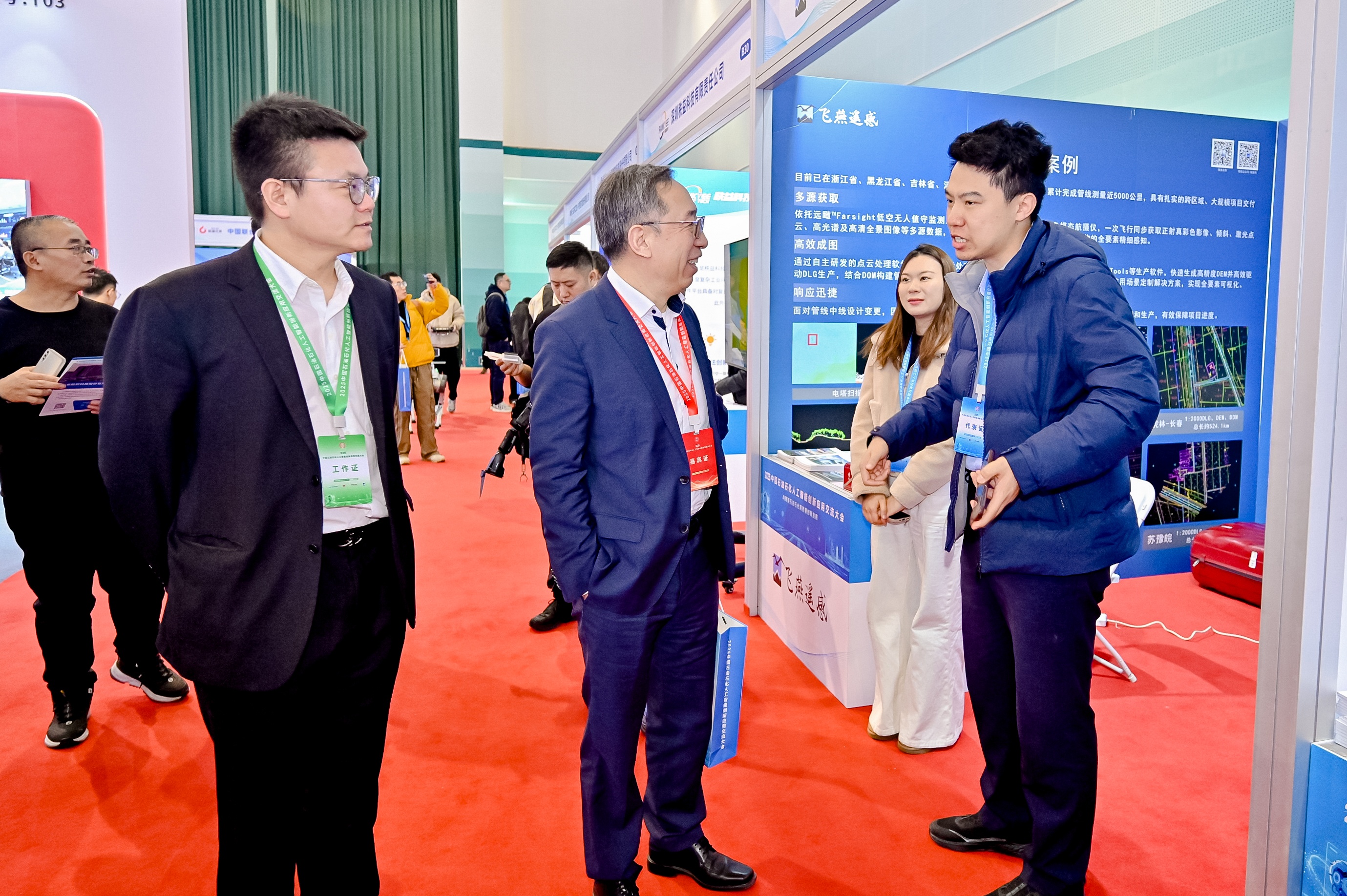 在展臺(tái)與報(bào)告廳內(nèi),飛燕遙感與多位行業(yè)專家及企業(yè)代表就“智慧轉(zhuǎn)型呼喚端到端解決方案”的技術(shù)路徑展開深度探討,共同交流分享石油石化企業(yè)數(shù)智化經(jīng)驗(yàn),探索行業(yè)數(shù)智化新路徑。截至目前,公司近年來的數(shù)據(jù)覆蓋面積已超過160萬平方公里,累計(jì)形成的時(shí)空數(shù)據(jù)資產(chǎn)更達(dá)300萬平方公里。從長春 - 石家莊天然氣管道工程的大范圍高效勘察,到泰順支線天然氣管道工程的復(fù)雜山區(qū)精準(zhǔn)測(cè)繪,再到蘇豫皖干線項(xiàng)目的 “有人機(jī) + 無人機(jī)” 協(xié)同作業(yè),飛燕遙感已成功交付累計(jì)約 5000 公里長輸管線航攝與探測(cè)項(xiàng)目,以“快速響應(yīng)、攻堅(jiān)克難、精益求精”的服務(wù)理念贏得客戶高度評(píng)價(jià)。