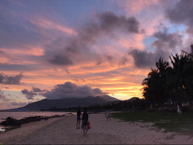 十里銀灘空氣清新,沙質潔凈均勻,水質清澈透明。大家在這里體驗了原生態的沙灘,澎湃的海浪,火熱的太陽,點燃了大家的熱情。夕陽西下,沙灘上燃起了篝火,我們被來自五湖四海的游客的熱情感染,紛紛加入了圍著篝火起舞的人群。璀璨奪目的煙花,為這個夜晚增添了一抹不一樣的彩。